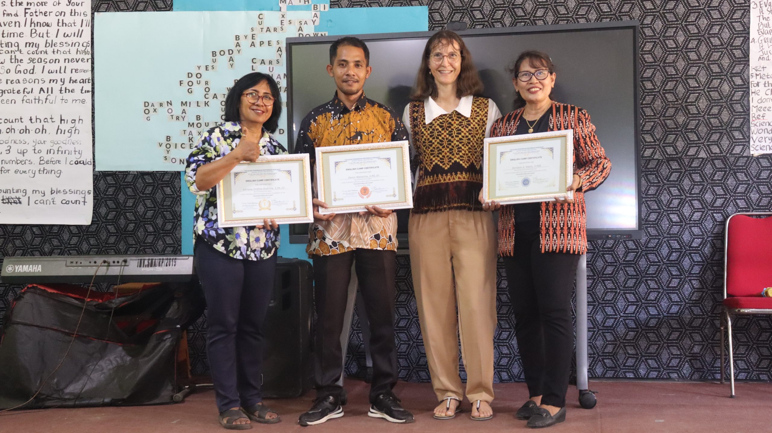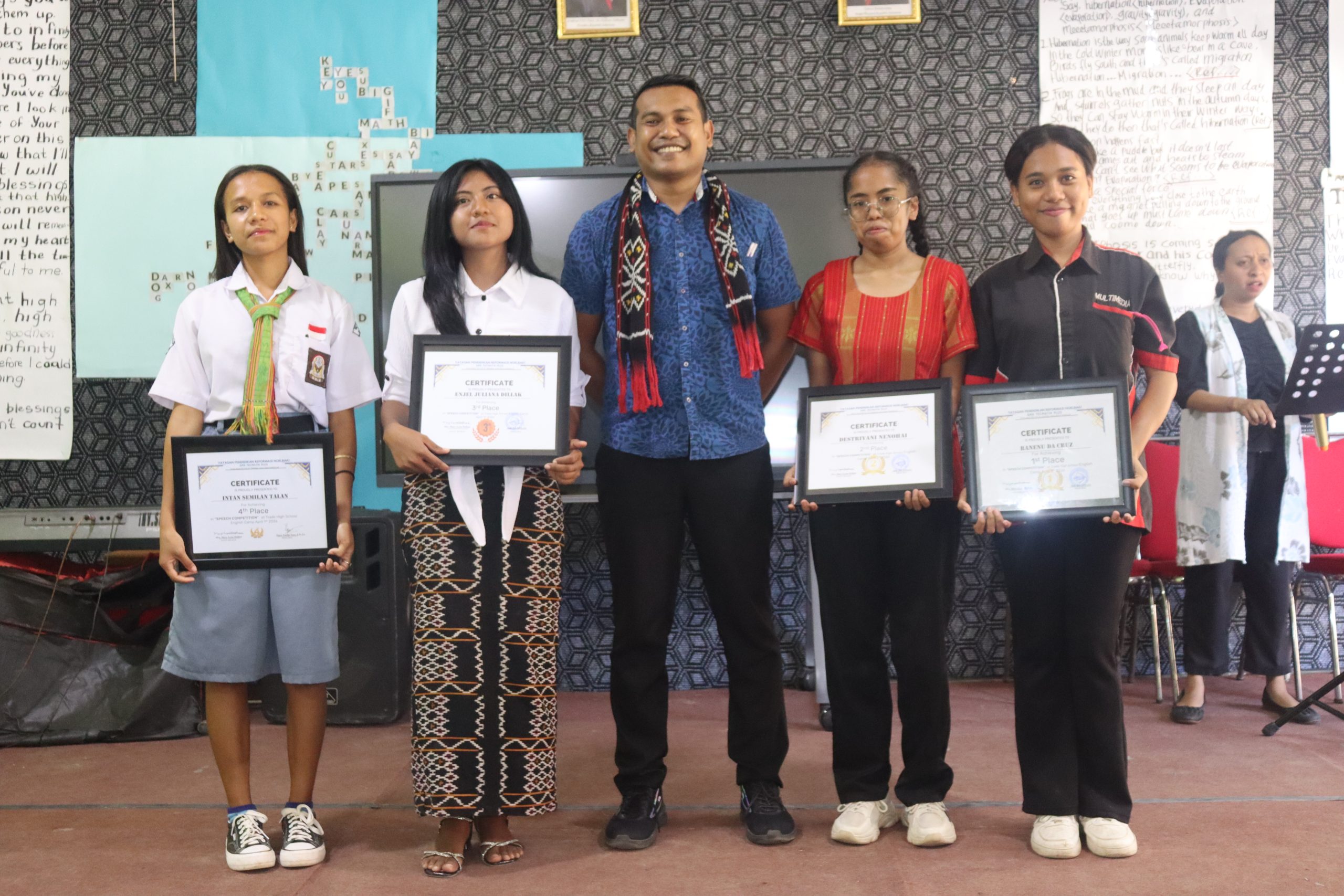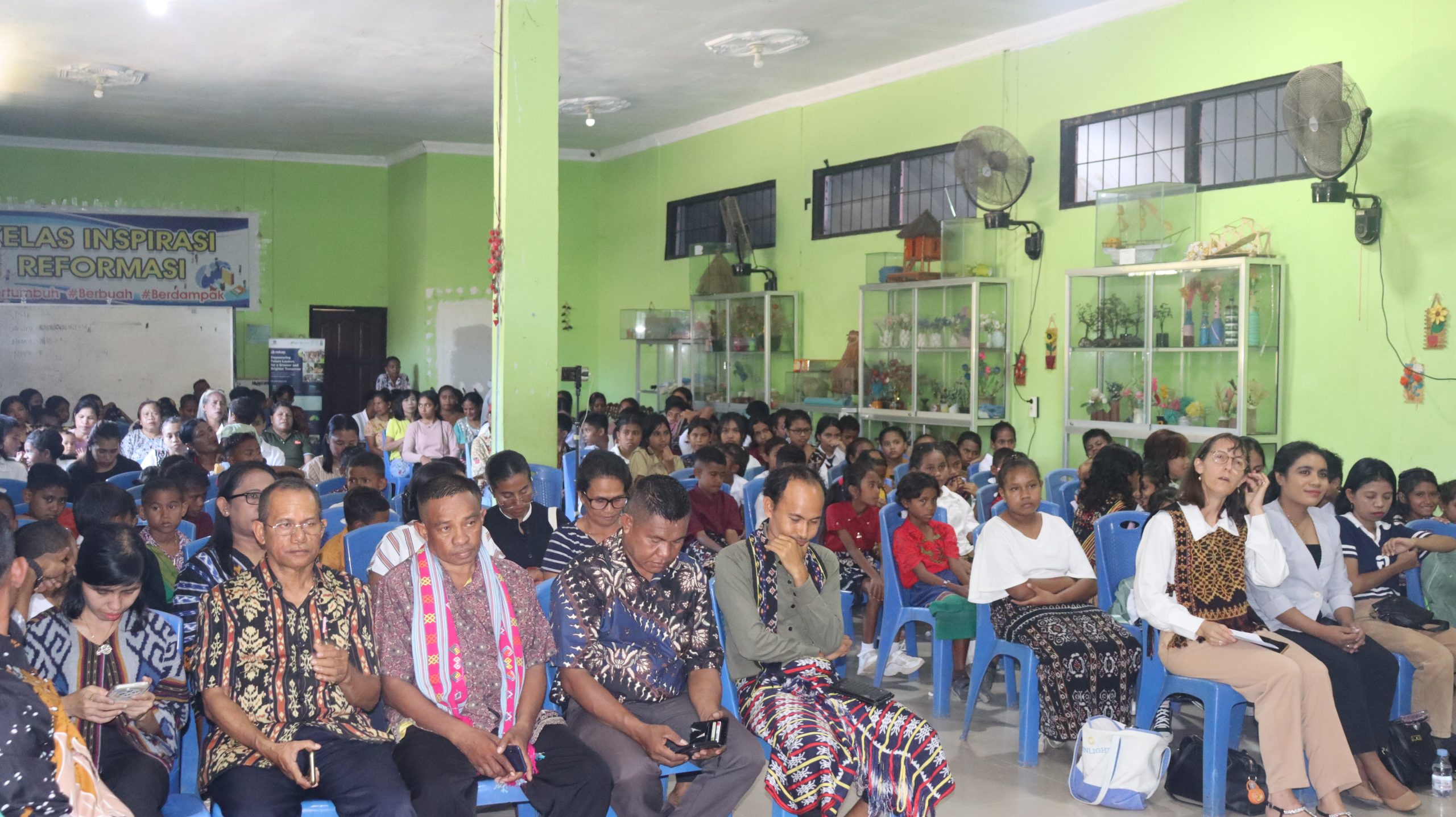 Seluruh warga sekolah berkumpul dalam acara puncak bertajuk “Panen Hasil English Camp”, sebuah seremoni apresiasi bagi siswa-siswi yang telah menyelesaikan program intensif penguasaan bahasa Inggris. Acara yang berlangsung khidmat ini dihadiri oleh jajaran Yayasan Pendidikan Reformasi Noelbaki, dewan guru, serta orang tua atau wali murid yang tampak antusias memadati ruangan hingga memenuhi kapasitas aula.